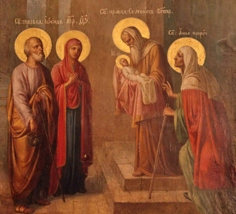 Когда пришло предписанное законом время, Пресвятая Дева Мария и праведный Иосиф принесли Младенца Иисуса в Иерусалимский храм, "чтобы представить пред Господа" и совершить положенные обряды. И здесь мы встречаем еще двух свидетелей Боговоплощения. Уже были пастухи, были волхвы. Теперь – старец Симеон, "муж праведный и благочестивый", которому "было предсказано Духом Святым, что он не увидит смерти, доколе не увидит Христа Господня".