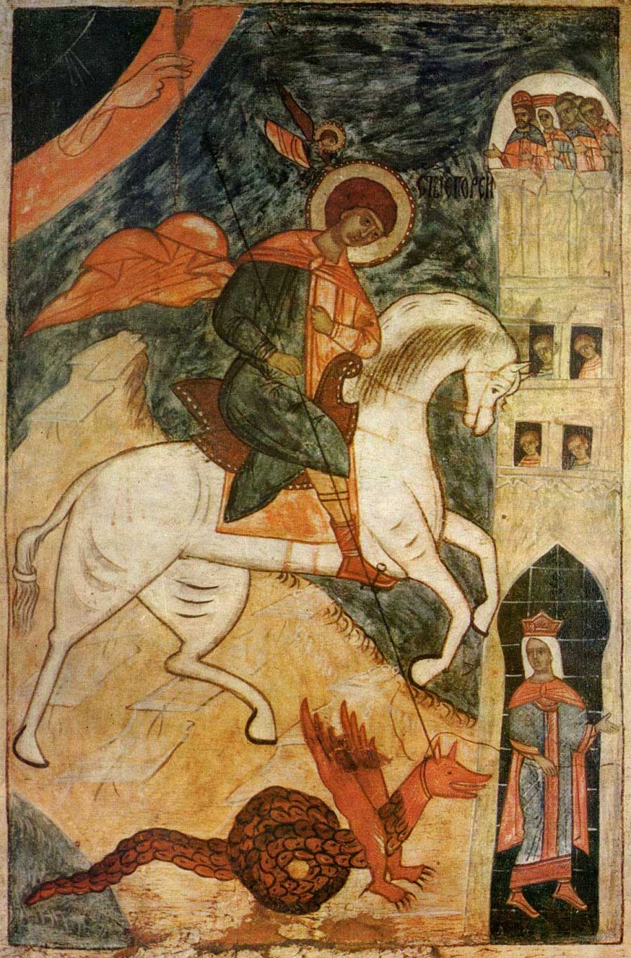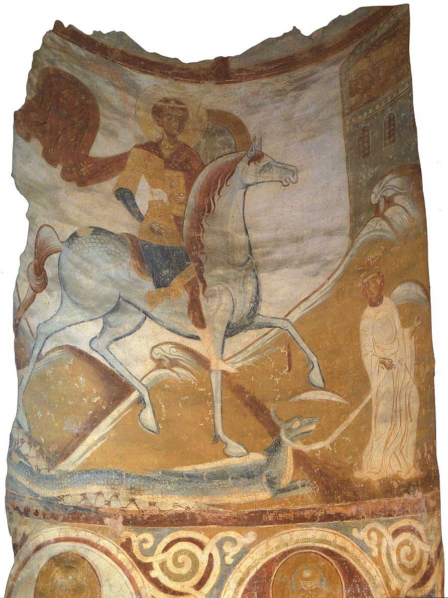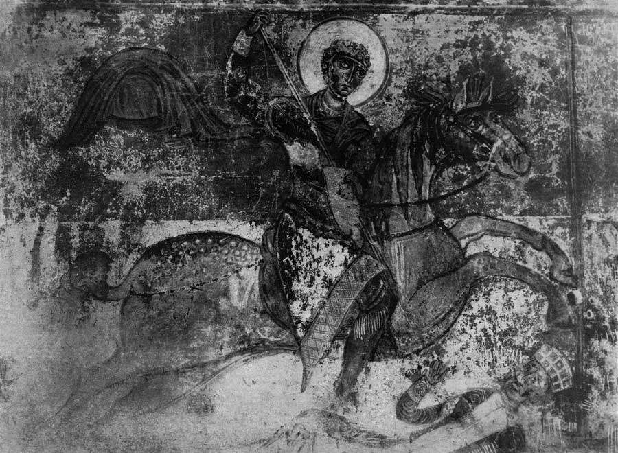 Чудо Георгия о змие. Фреска. Последняя четверть XII в. Церковь святого Георгия, Старая Ладога