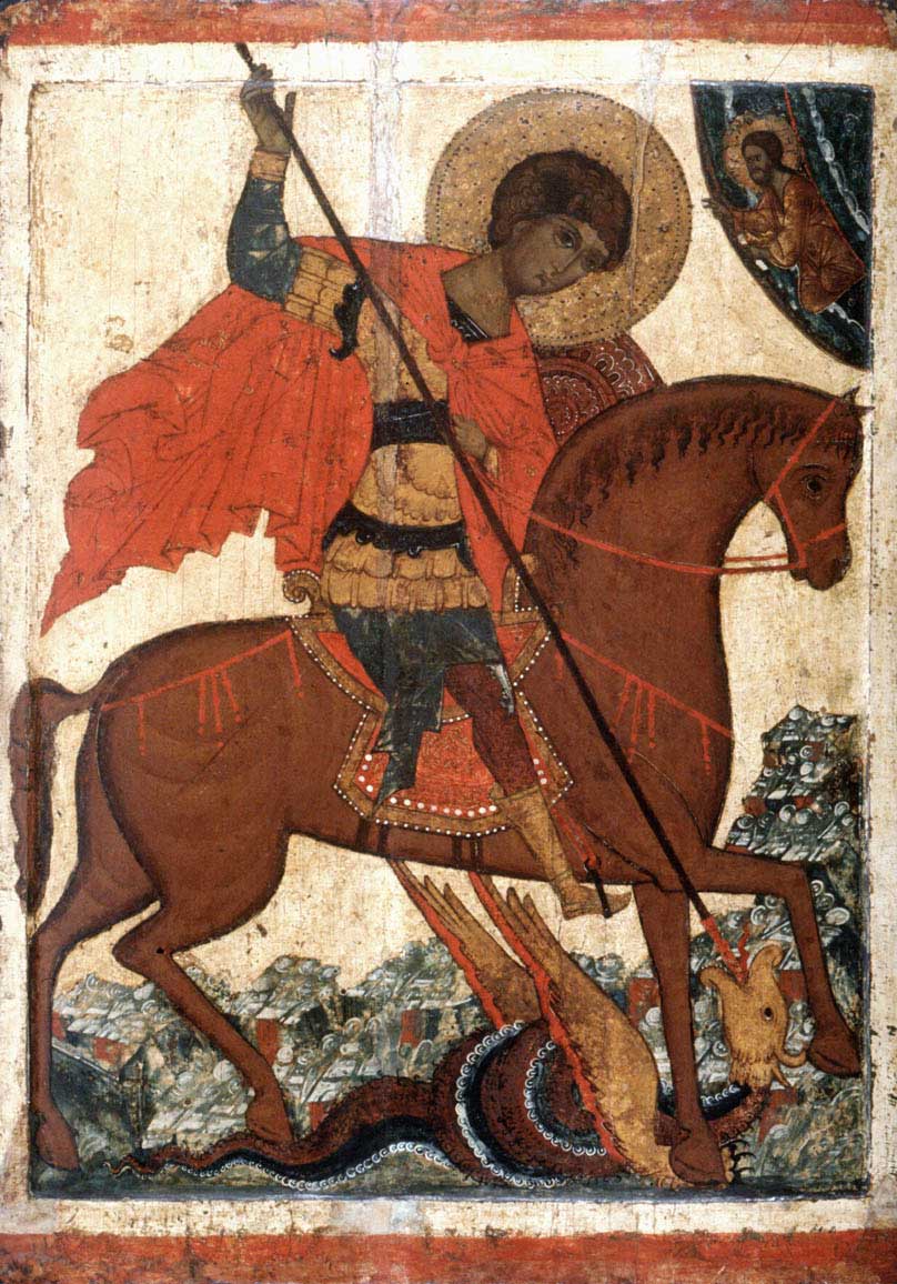 Св. Георгий – покровитель воинства. Изображение Георгия Победоносца на коне символизирует победу над диаволом – «древним змием» (Откр.12:3,20:2). Это изображение было включено в древний герб города Москвы.