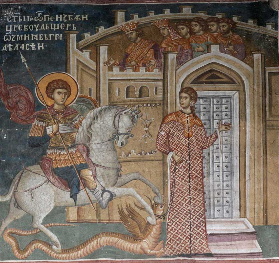 Чудо Георгия о змие. До 1350 г. Монастырь Дечаны, Сербия