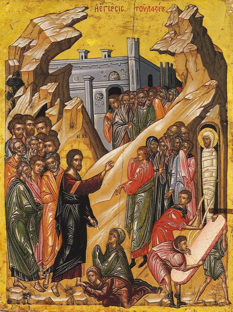 «Воскрешение Лазаря – последнее великое чудо Христа, последний отблеск Славы Его перед ночью страстей. Евангелист Иоанн изображает это событие как очевидец, с поразительной, почти осязаемой достоверностью. Видишь буквально каждый штрих: робость учеников, их колебания и, наконец, решимость идти навстречу опасности. Иисус с глазами, полными слез, у гробницы; сёстры, подавленные горем; смущение Марфы, отваленный камень и властный призыв, услышанный в иных мирах: «Выйди, Лазарь!» Безмолвная фигура в саване на пороге склепа… Тот, Кто вскоре Сам должен будет пройти через врата смерти, объявляет Себя ее победителем»