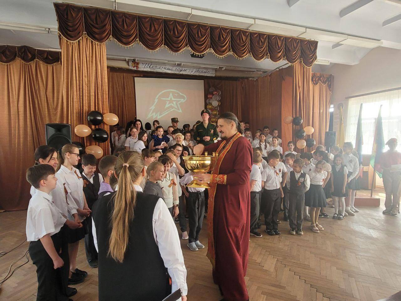 7 мая 2025 года настоятель храма святой блаженной Ксении Петербургской поселка Гирей, протоиерей Петр Булыгин, принял участие в церемонии принятия в военно-патриотическое движение «Юнармия» учеников МБОУ СОШ №10 имени М.И. Белоусова, пос. Гирей. Настоятель храма поздравил ребят с вступлением в ряды юнармейцев, пожелал успехов на этом поприще, благословил и окропил всех присутствующих святой водой.