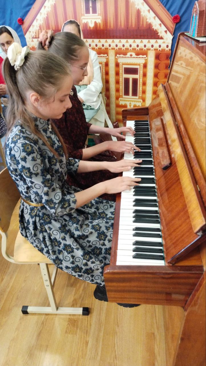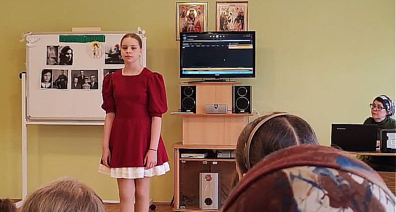 Настоятель храма Виктор Федоренко рассказал присутствуещим о ходе ВОВ и обстоятельствах,которые складывались во время военных действий. Сестры Науменко Варя, Мария и Фоменко Лариса читали стихи, пели песни, Варвара исполнила танец "Голубь мира".Сестры Алейниковы Анна и Мария исполнили на фортепиано поппури "Песни военных лет ".Преподаватель Воскресных классов Кравцова Наталья Юрьевна рассказала о героических поступках Зинаиды Михайловне Туснолобовой - Марченко.