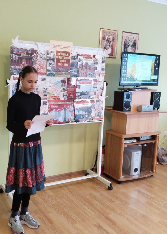 Анастасия Кравцова подготовила и зачитала доклад "Дети- герои войны" о Зинаиде Портновой, в 1958 году посмертно было присвоено звание Героя Советского Союза. Мероприятие закончилось праздничным чаяпитием.