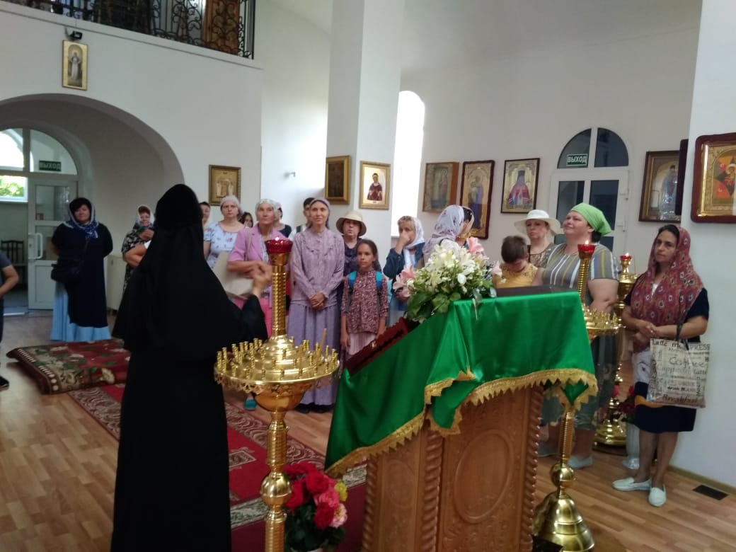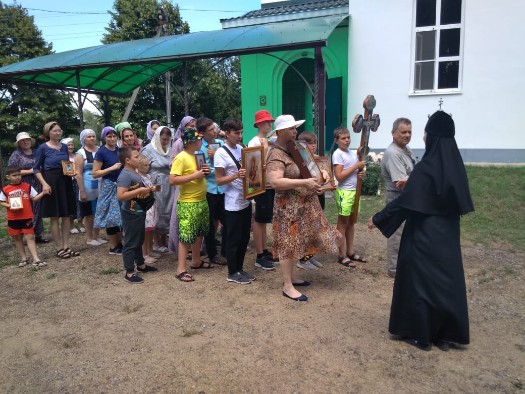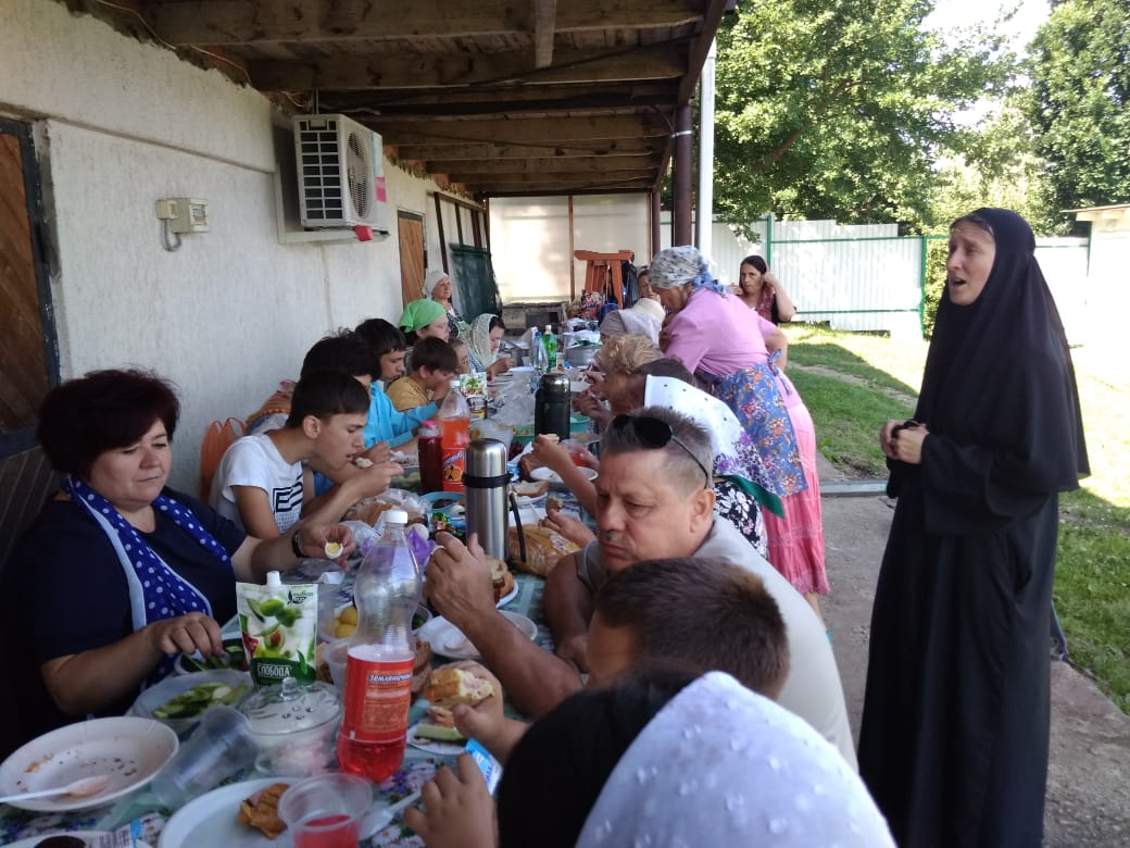 18 июня группа паломников из Гулькевичского благочиния посетила храм в честь Святого Иоанна Кронштадского х.Новоселовка Усть - Лабинского района. Гулькевичан встретила насельница подворья инокиня Ольга (Малькова), рассказала историю возникновения храма, о чудесах которые совершались по молитвам к Святому Иоанну Кронштадскому. Пригласила на колокольню храма и к источнику в честь Святого Иоанна Кронштадского. Все вместе прошли Крестным ходом вокруг храма и по территории к источнику. Дети с родителями окунулись в святом источнике и помогли в сборе черешни. Во время трапезы мать Ольга читала духовные стихи и исполнила песни на духовные темы.