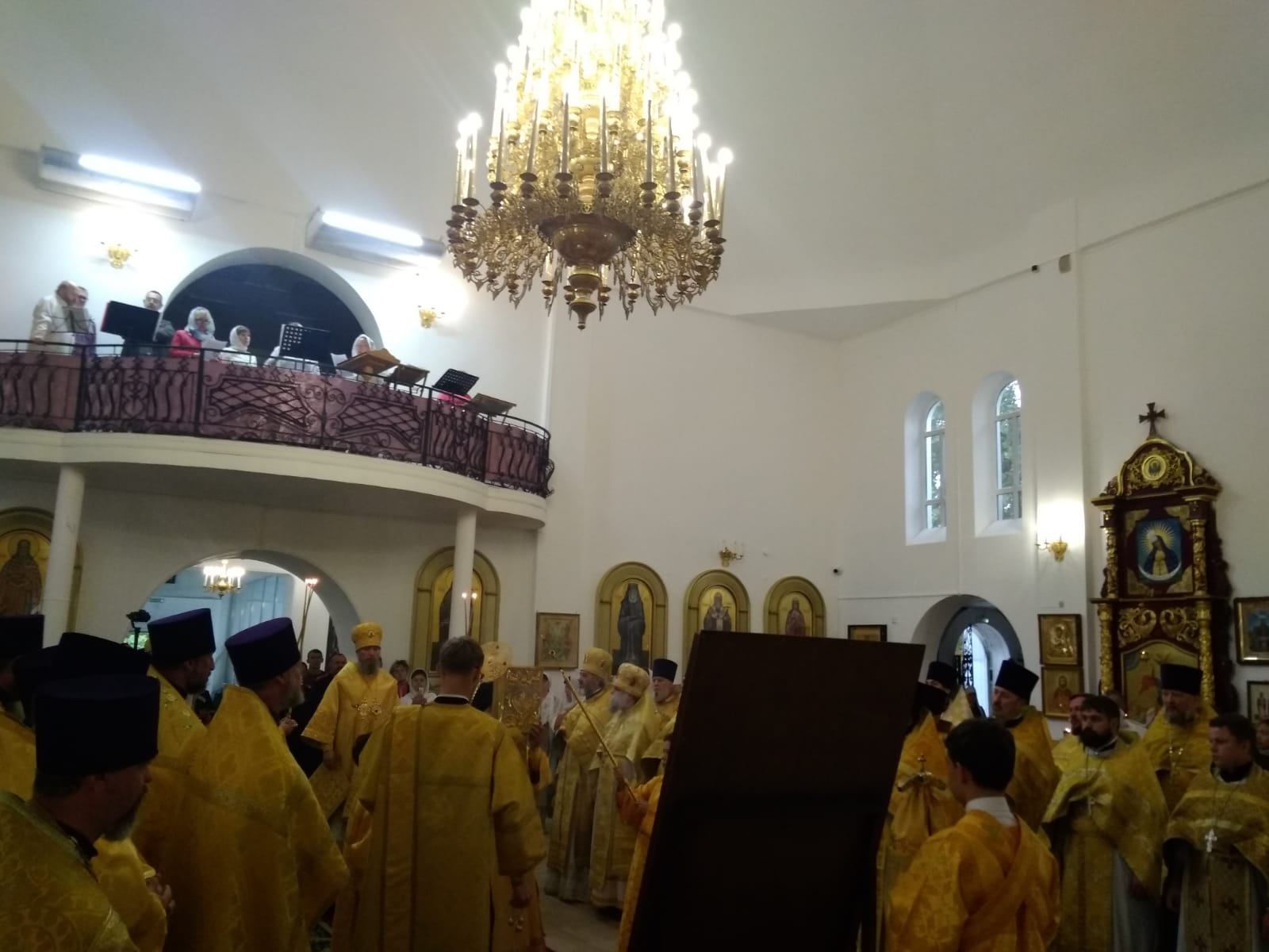 После Божественной литургии, которая прошла в соборе Святого Николая Чудотворца в г. Армавир, все присутствующие под звон колоколов и пение молитв отправились Крестным ходом от Свято-Никольского кафедрального собора до часовни святого князя Александра Невского в Духовно-патриотическом комплексе «Мемориал Фортштадт».
