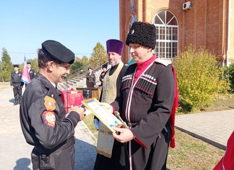 15 октября отметило эту значимую дату и Гулькевичское районное казачье общество. На территории Свято-Троицкого храма после молебна который отслужил благочинный Гулькевичского округа настоятель Свято-Троицкого храма г. Гулькевичи протоиерей Виктор Федоренко, состоялось торжественное мероприятие. Со словами поздравления перед рядами казаков выступил атаман, подхорунжий Виталий Мясников. Также он наградил благодарственными грамотами казаков и казаков-наставников, нетолько отлично справляющихся с несением службы, но и работающих с молодёжью в рамках казачьего образования.