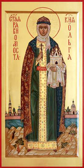 Строительство ею Софийского собора в Киеве – матери городов Русских – явилось знаком участия Божией Матери в Домостроительстве Святой Руси. Киев, т.е. христианская Киевская Русь, стала третьим жребием Божией Матери по Вселенной, и утверждение этого жребия на земле началось через первую из святых жен Руси — святую равноапостольную Ольгу. Христианское имя святой Ольги – Елена (в переводе с древнегреческого «факел») – стало выражением горения ее духа. Святая Ольга (Елена) приняла духовный огонь, который не угас во всей тысячелетней истории христианской России. Полное житие равноапостольной Ольги, великой княгини Российской Святая равноапостольная Ольга была супругой великого князя Киевского Игоря.